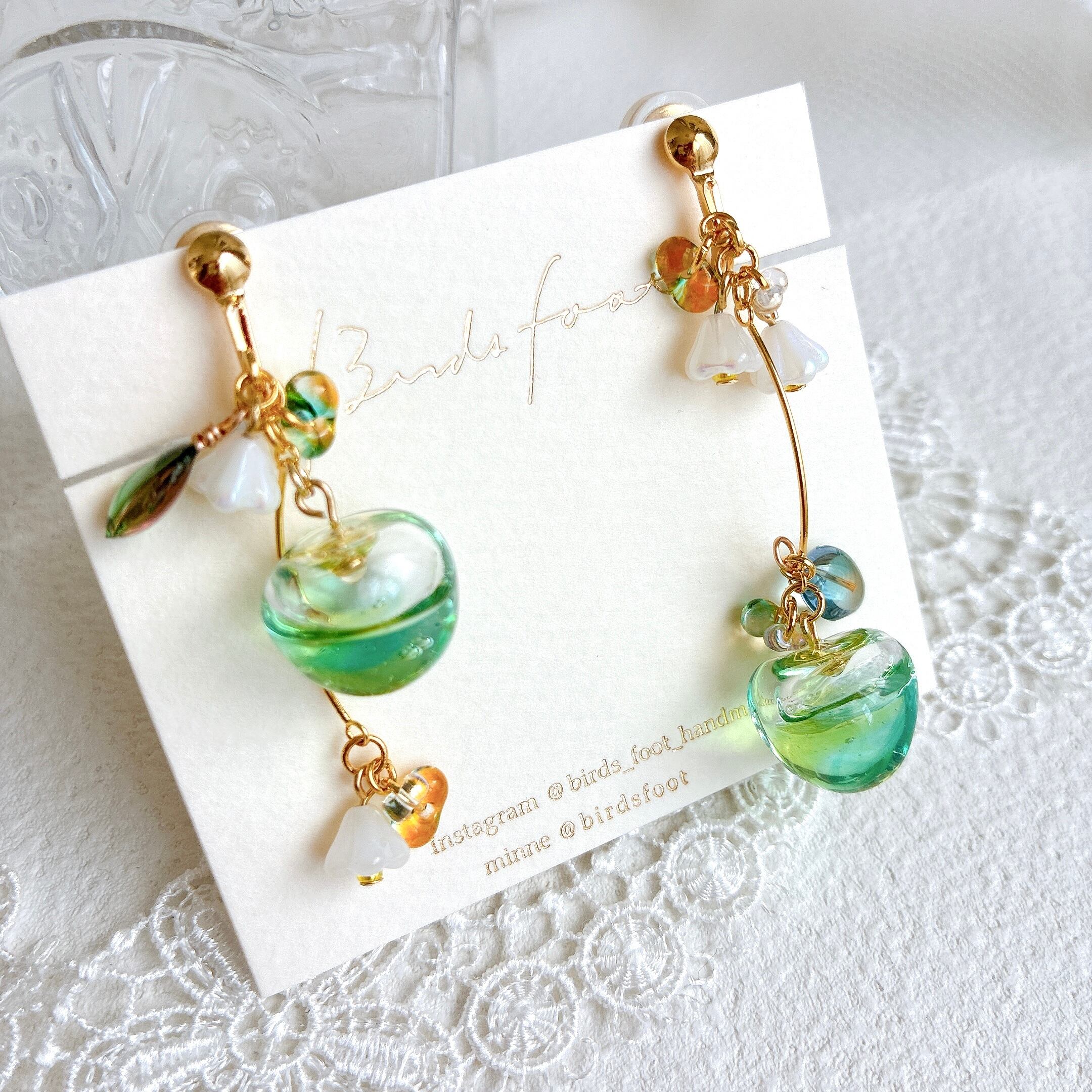 青リンゴのイヤリング2点