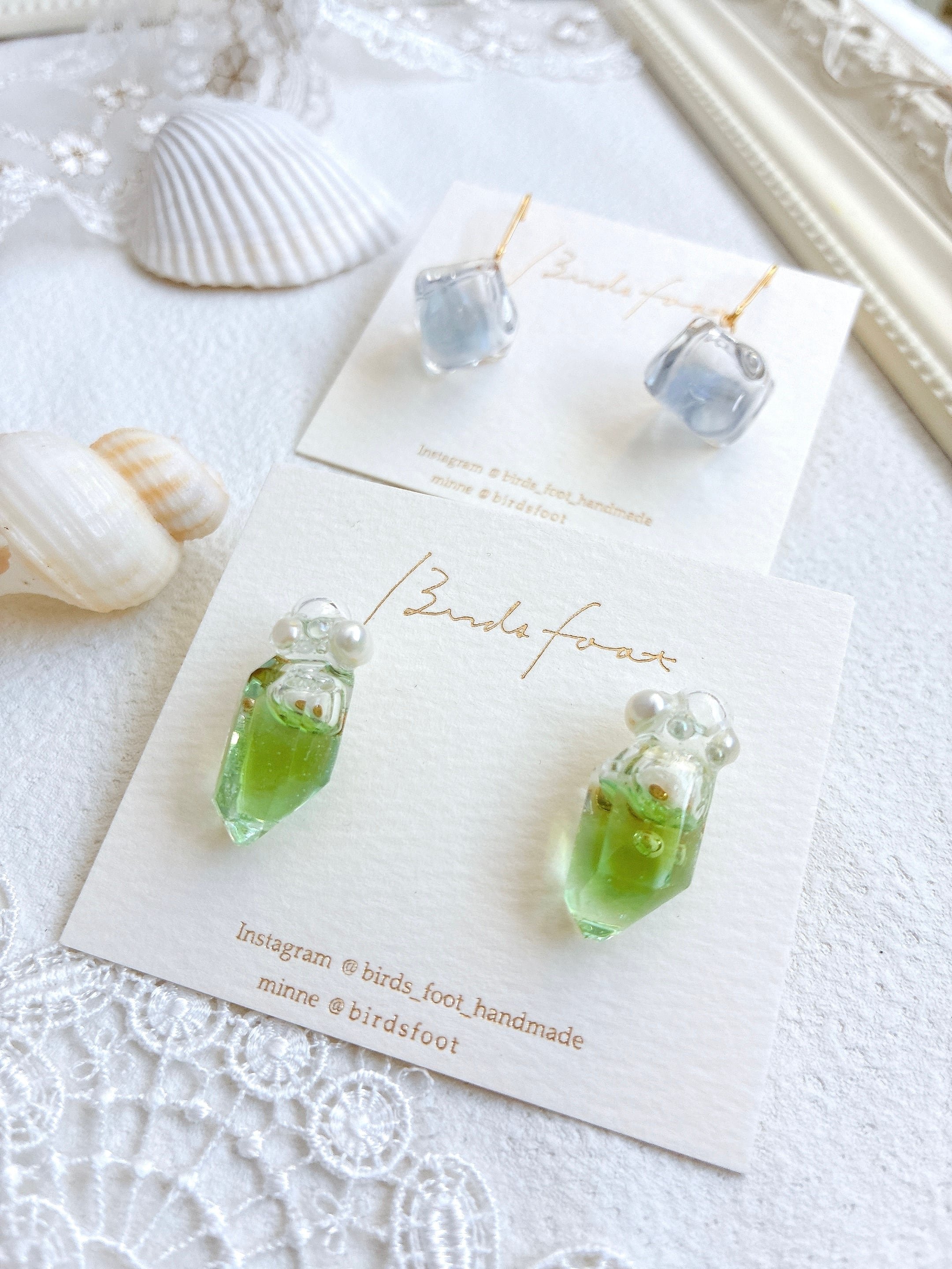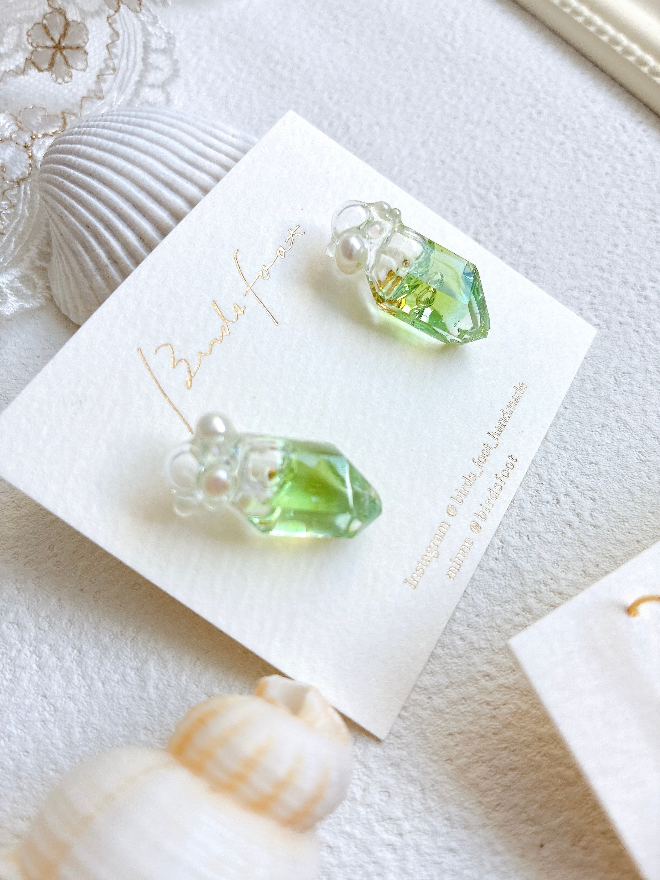 綺麗なグリーンの液体が入ってるように見えるデザイン。淡水パール使用